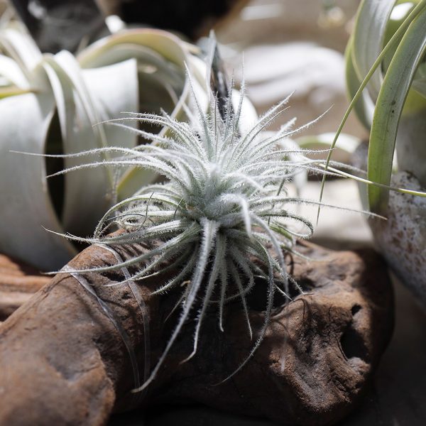 空気中の水分を吸収して生きているため、鉢も土も不要です。「手が汚れるのが嫌」「土の処分が面倒」という方に選ばれています 。 流木に乗せたり、ガラス容器に入れたり、そのまま棚に転がしておいたりと、インテリアに合わせて自由に飾れるのが魅力です 。