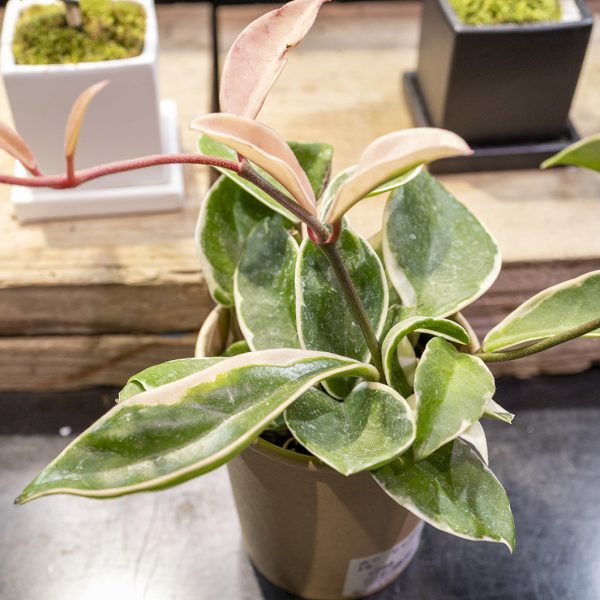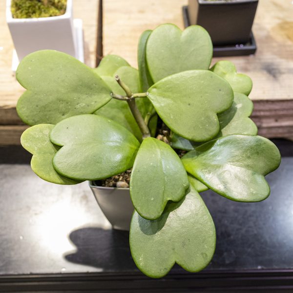 乾燥に強く、手間いらずで楽しめる「失敗しにくい」植物です。 ガジュマルやパキラといった不動のNo.1・2に次ぐ、おすすめの品種として人気があります。葉の形が個性的で可愛らしく、吊り鉢(ハンギング)にして飾るスタイルも好評です。 バレンタイン時期には、葉がハートの形をした「ハートホヤ」なども季節商品として注目されます。